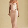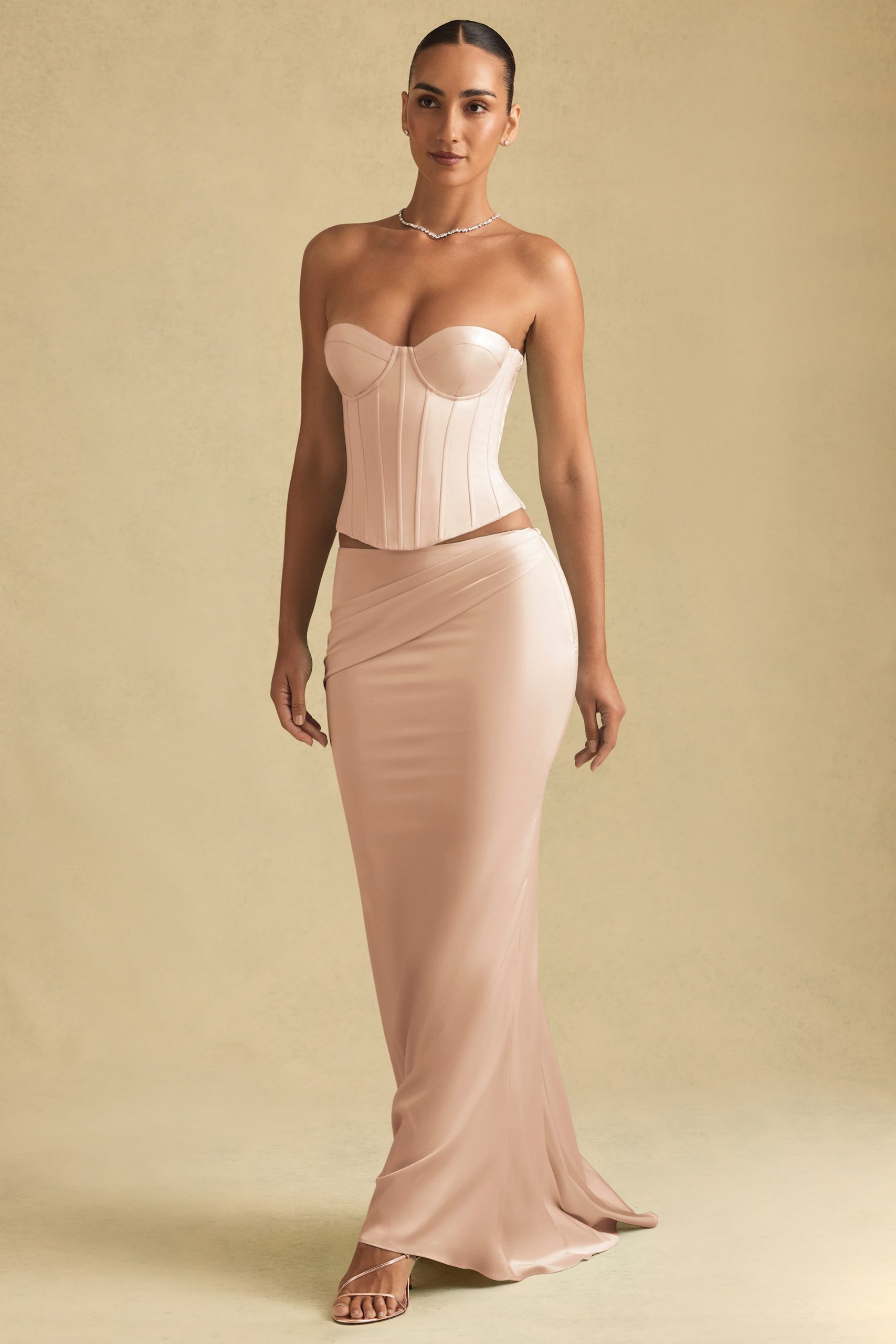 Draped Low-Rise Maxi Skirt in Beige Gold