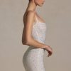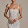 Made for glittering evenings. The perfect complement to special occasions, the Aellin mini dress is adorned with tonal HOTFIX embellishments that sparkle endlessly. It’s crafted from premium 20D stretch mesh to a figure-hugging bodycon silhouette and framed with slender adjustable shoulder straps for your perfect fit.