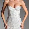 Head-turning silhouettes. Modelled on classic corsetry, the Crystella mini dress features a fitted bodice with moulded three-piece wired cups for enhanced lift and support. It’s crafted to a figure-skimming A-line silhouette from premium 20D stretch mesh with a power mesh lining that offers elevated comfort and coverage. The sweetheart cupped neckline is framed with detachable, adjustable camisole straps and the design is saturated with scores of sparkling HOTFIX embellishments.