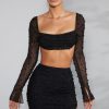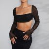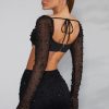 Designed to make an impact, La Desirade is super cropped and super embellished. Fully beaded with extra long mesh sleeves that flare at the wrist, the La Desirade crop top features an underwired bust with a pearl embellished, cowl neck overlay. It’s time to feel adorned in our embellished mesh crop top.