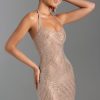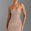 Classic silhouettes with a sparkling twist. Perfect for your next evening event, the Amolika mini dress is adorned with scores of signature HOTFIX embellishments that sparkle endlessly under spotlights. It’s crafted from premium 20D stretch mesh to a figure-hugging halterneck silhouette complete with a statement open back.