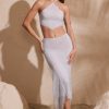 Embellished Handkerchief Hem Midaxi Skirt in Silver