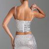Made for commanding attention. Ideal for evening plans, the Adaia skirt is crafted from premium 20D mesh with a single-layer lining to a striking micro mini length. It’s cut for a low-rise fit and adorned with scores of sparkling HOTFIX embellishments that are sure to turn heads.