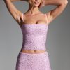 Made for evening plans, the Inina micro mini skirt is adorned with signature HOTFIX embellishments that sparkle under spotlights. It’s crafted to a figure-skimming A-line silhouette from premium 20D mesh with a touch of stretch. Designed to sit at the midpoint of the waist, it’s complete with a thigh-high side split.