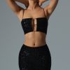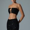 Make a statement. Perfect for styling with the coordinating top or an oversized tee depending on your plans, the Aubrey mini skirt is crafted from our luxe stretch fabric and overlaid with scores of sparkling sequins. Designed for a mid-rise fit, it’s cut to a figure-hugging bodycon silhouette.