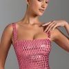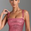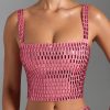 Statement staples for glittering nights. Designed exclusively in-house, the Alaine top is a special piece that’s perfect for your next event. It’s crafted from premium 20D mesh with a touch of stretch and cut to a figure-hugging bodycon silhouette framed with a square neckline. The all-over rectangular HOTFIX embellishments promise sparkle from every angle and the tapered straps can be adjusted for your perfect fit.