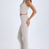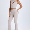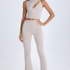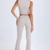 Foldover Flared Trousers in Taupe