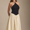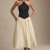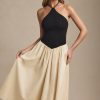 Soft contrast. Timeless and airy, the Thalira midaxi dress is a wardrobe staple you’ll love for years to come. It’s designed with a fitted halterneck bodice crafted from buttery soft stretch jersey with TENCEL™ Modal fibres, derived from controlled or certified wood sources, and features a contrasting gathered voile skirt. It’s cut to a halterneck silhouette with adjustable straps at the nape for your perfect fit.