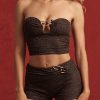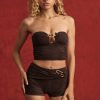 Hardware-Detail Bandeau Crop Top in Dark Chocolate