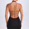 Signature silhouettes, high-impact details. A style you’ll wear on repeat all summer long, the Jaylyn mini dress is elevated with a cowl neckline centred by polished O-ring hardware and a statement open back complete with tubular criss-cross straps. It’s crafted from signature 20D mesh and soft-touch stretch jersey to a figure-hugging silhouette enhanced with perfectly placed all-over ruching.