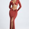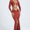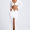 Minimalism meets maximalism with the Adena maxi skirt. An elevated take on everyone’s favorite style, it’s crafted from soft acetate jersey with a touch of stretch and cut to a fishtail silhouette with a V-shaped waistband that creates a stunning hourglass shape. It’s elevated with immaculate ruching at the waist and custom-developed hardware tipped with lustrous gemstones.