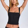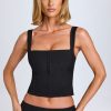 Statement separates. Designed to be worn with your favourite jeans or the coordinating Issa mini skirt, the Tallie top is crafted from a figure-hugging woven crepe fabric with a touch of stretch for enhanced comfort. It features a square neckline, decorative hook-and-eye detailing at the front, and adjustable shoulder straps for a custom fit and additional support.
