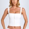 Statement separates. Designed to be worn with your favourite jeans or the coordinating Issa mini skirt, the Tallie top is crafted from a figure-hugging woven crepe fabric with a touch of stretch for enhanced comfort. It features a square neckline, decorative hook-and-eye detailing at the front, and adjustable shoulder straps for a custom fit and additional support.