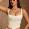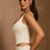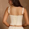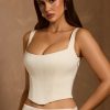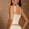 Master day-to-night dressing with the Hannie corset top. A versatile staple you’ll love and wear for years to come, it’s designed with built-in boning for enhanced support and structure, and features a curved hem, inspired by classic styles. It’s crafted from lustrous premium satin with a touch of stretch and has a signature lace-up back, complete with adjustable ties.