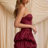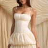A fresh take on everyone’s favourite silhouette, the Laela mini dress is crafted from stretch taffeta with a built-in corset bodice for enhanced shaping and a unique double-layered bubble hem that creates a stunning voluminous shape. It’s elevated with pleated shaped cups, a functional lace-up back for your perfect fit, and matching jersey shorts for enhanced coverage.