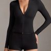 A fresh take. Designed to hug your curves to perfection, the Araceli playsuit features a collared bodice crafted from semi-sheer jersey traced with tonal buttons, inspired by classic workwear, and contrasting mini shorts made from all-new ponte fabric that’s tailored to gently contour to your curves like a second skin for the ultimate airbrushed silhouette. The slender functional belt makes the perfect finishing touch.