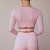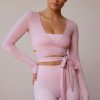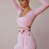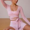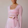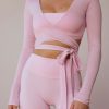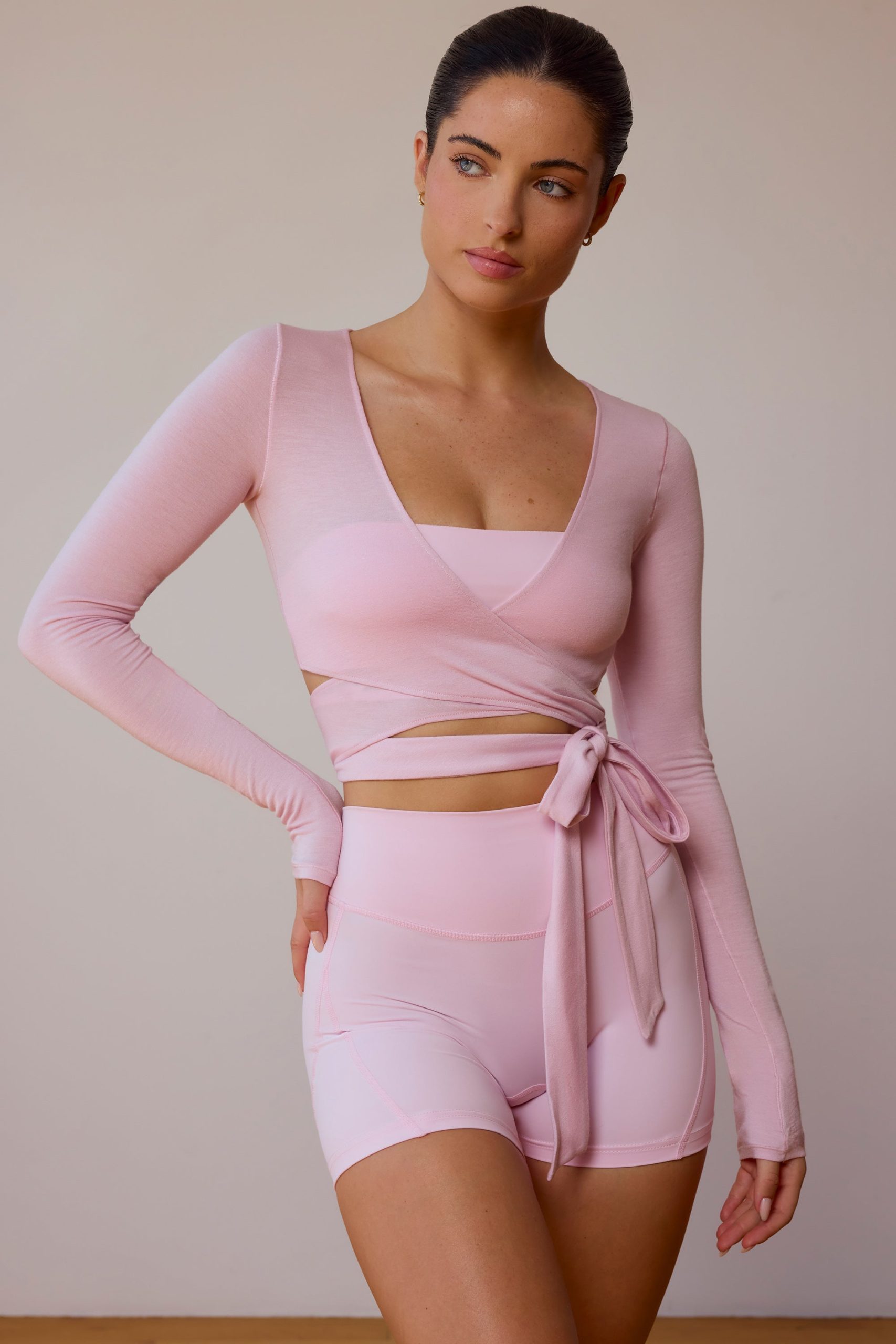 Ballet Class-inspired looks. The perfect delicate layering piece, this long-sleeve top is crafted from our soft, lightweight, and slightly sheer jersey with a touch of stretch. It’s cut to a wrap silhouette with adjustable straps that can be tied in a bow at the front. It’s framed with a plunging V-neckline and finished with a signature Bo&Tee woven logo.