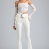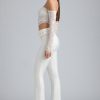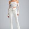 Doll-inspired separates for playful styling. Inspired by the It girls of the noughties, the Gia flared trousers are cut to a comfortable mid-rise silhouette and anchored with an oversized belt, complete with a silver-tone buckle and eyelets. They’re crafted from sculpting stretch jersey and overlaid with a high-shine metallic overlay that glimmers in the light. The pressed seams enhance the contoured look.