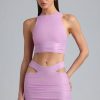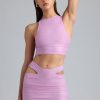 Metallic Cut-Out Low-Rise Mini Skirt in Violet Pink