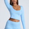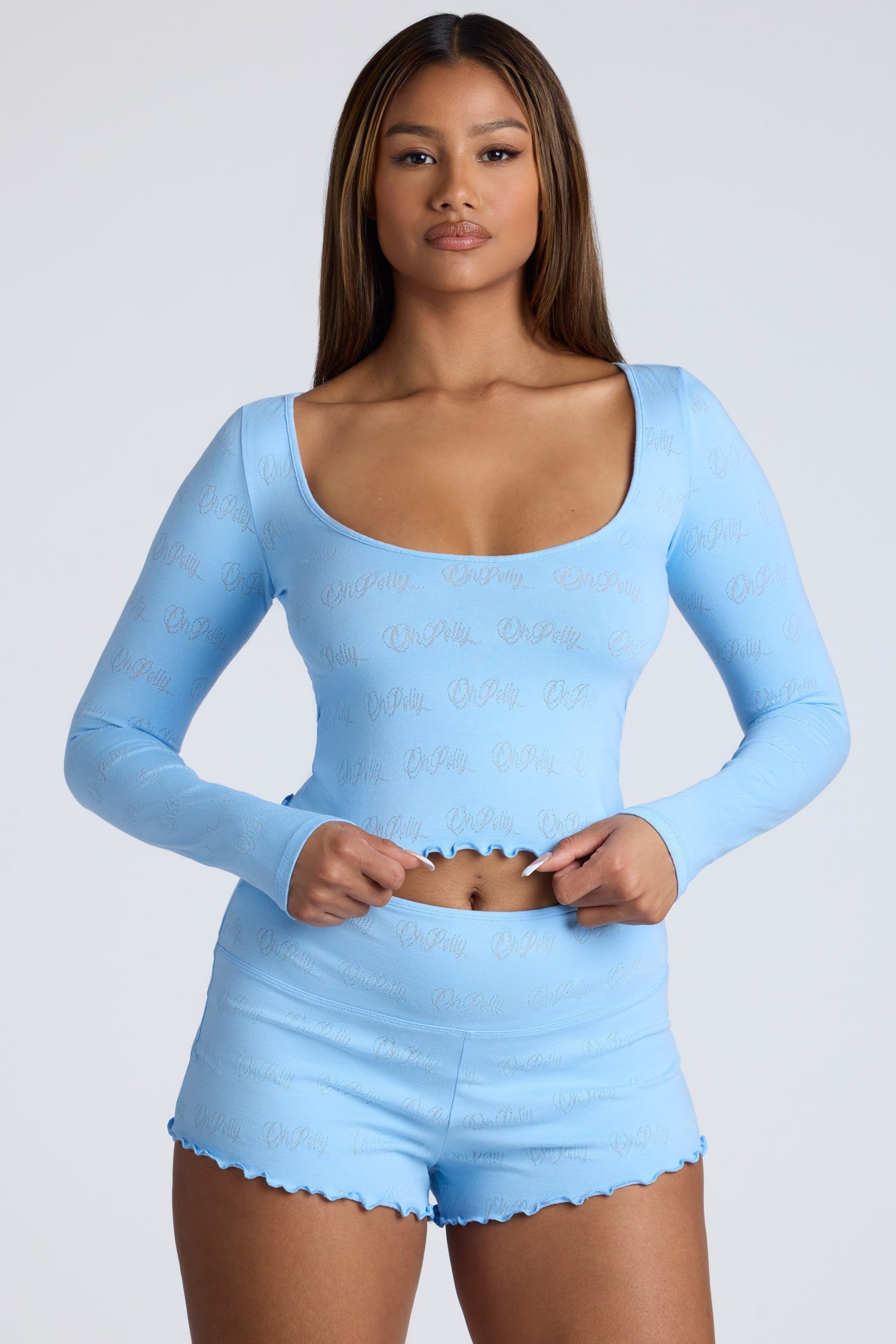 You’ll never want to take off our fun and flattering Loungewear. Cut from our lightweight and stretchy pointelle jersey fabric, the Loungewear mini shorts feature Oh Polly embossed branding throughout. Your go-to for cosy days at home, this snug wardrobe staple is complete with a mid-rise waistband and pretty lettuce hem edging.