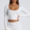 You’ll never want to take off our fun and flattering Loungewear. Designed in our lightweight and stretchy pointelle jersey fabric, the Loungewear trousers feature Oh Polly embossed branding throughout. A loose-fit essential for lazy days, Loungewear is complete with a flattering mid-rise waistband, wide leg, and lettuce hem edging.