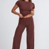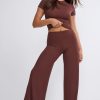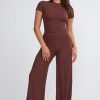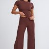 Modern minimalism. Blending style and sustainability, discover our Modal edit of elevated everyday staples and year-round wardrobe foundations. Crafted from low-impact TENCEL™ Modal fibres, the mid rise Nour trousers combine premium quality with a commitment to the planet. Featuring unmatched softness and breathability, this ribbed design is complete with a comfortable elasticated waistband and relaxed, wide leg fit. Biodegradable and compostable, the TENCEL™ Modal fibres are sourced sustainably from beechwood trees.