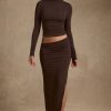 Versatile staples for all your plans. Perfect for day-to-night styling, the Nadina maxi skirt is designed with a universally flattering asymmetric elasticated waistband with a universally flattering mid-low rise fit. It’s crafted from buttery soft, stretchy and breathable jersey made with TENCEL™ Modal fibres, derived from controlled or certified wood sources, and features a thigh-high side split for ease of movement.