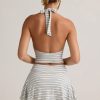 Modal Halterneck Tank Top in Blue & Yellow Stripe
