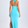 Modal High-Split Halterneck Maxi Dress in Aqua Blue