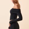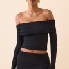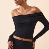 Contemporary classics. An updated take on everyone’s favourite staple, the Kesia top is cut to an off-shoulder silhouette with a foldover ruched neckline. It features internal silicone tape for enhanced hold, is framed with fitted long sleeves and is crafted from our signature buttery soft jersey fabric made with TENCEL™ Modal fibres, derived from controlled or certified wood sources.