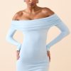 Modal Off-Shoulder Mini Dress in Ice Blue