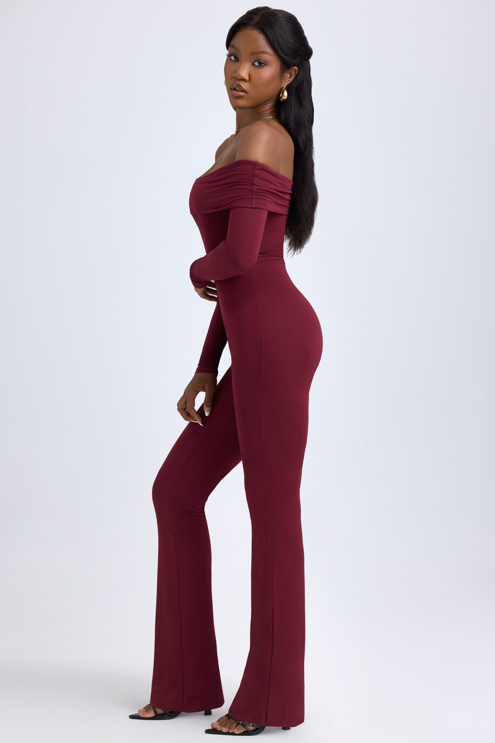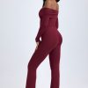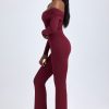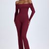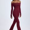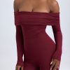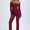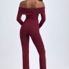 Modal Off-Shoulder Ruched Jumpsuit in Wine Red