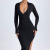 Modal Plunge V-Neck Midaxi Dress in Black