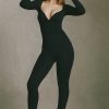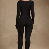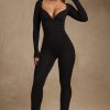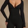 Modal Ruched Long-Sleeve Jumpsuit in Black