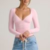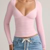 New season staples. Ideal for day-to-night styling, the Emry top is framed with a contoured V-neckline and flattering underbust seams. It’s crafted from buttery soft and stretchy jersey made with TENCEL™ Modal fibres, derived from controlled or certified wood sources, and detailed with silhouette-enhancing ruching at the side seam that amplifies the second-skin fit.