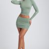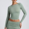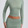 Modal Ruched Long-Sleeve Top in Sage Green
