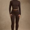 Modal Ruched Mid-Rise Leggings in Chocolate Brown
