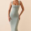 Modal Square-Neck Midi Dress in Smoke Green