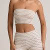 Modal Strapless Crop Top in Pink & Yellow Stripe