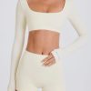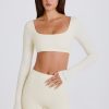 Press pause. Silky smooth and cool to the touch, this crop top is made from our stretchy performance fabric for a second-skin fit. It’s cut to a micro silhouette with long fitted sleeves that stay in place and twist-back detailing you’ll love.