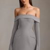 Off-Shoulder Structured A-Line Mini Dress in Chocolate Brown