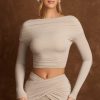 New season, new looks. The ideal day-to-night styling piece, the Dova crop top is cut to a high-neck silhouette and turns to reveal a statement open back, complete with twisted detailing. It’s crafted from premium semi-sheer jersey with a touch of stretch and elevated with all-over ruching that creates a draped effect.