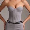 Perfect sculpting, perfect pinstripes. Ideal for updating your capsule wardrobe, the Lainey corset top is crafted from premium twill fabric with a durable weave and smooth drape. Modelled on classic styles, it features built-in boning and wired cups for enhanced support, as well as functional lace-up back detailing for your perfect fit. It’s framed with a sweetheart neck and dipped hem that creates a sleek, sculpted look.