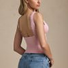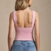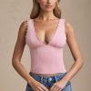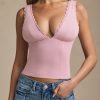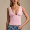 Plunge-Neck Scallop-Trim Tank Top in Soft Pink