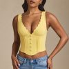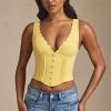 Romantic separates for daytime plans. A fresh take on classic corsets, the Lucia top is crafted from premium stretch woven fabric that hugs every curve to perfection. It’s designed with a curved hem, plunging scalloped neckline, and detailed with decorative fabric-covered buttons at the front. The straps can be fully adjusted for your perfect fit.