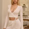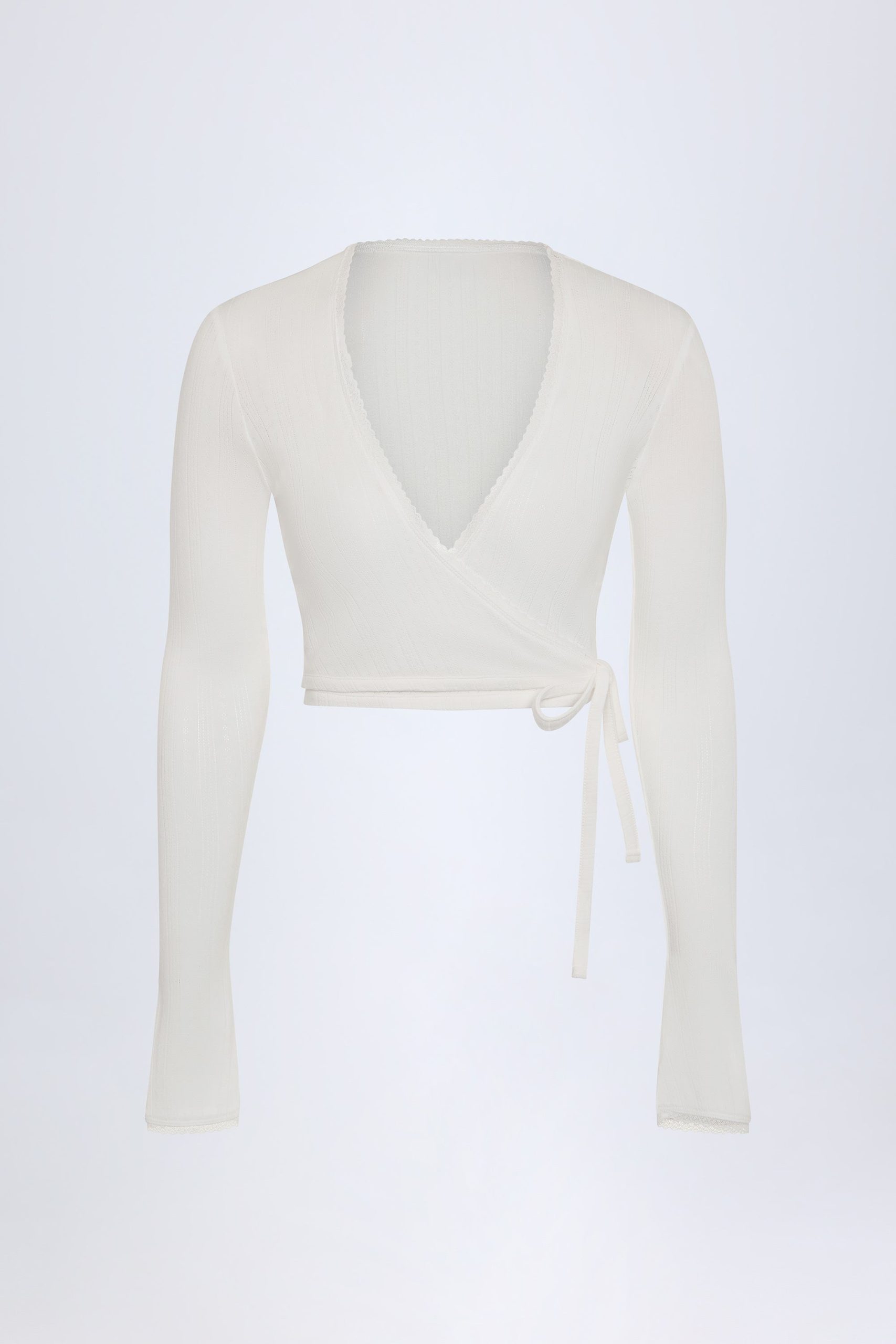 Slow moments, sweet silhouettes. Perfectly soft, breathable and lightweight, the Lou crop top is crafted from cotton jersey with a delicate pointelle texture. It’s cut to a wrap silhouette with a V-neck, pretty lace trims, and adjustable ties at the left-hand side for a customisable fit and coverage.