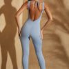 Ribbed Cut Out Back Jumpsuit in Light Blue