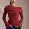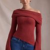 Casual styling never looked so luxe. A playful twist on a classic favourite, the Cecily jumper is crafted from ultra-luxurious, soft and slightly stretchy ribbed-knit fabric to a figure-hugging asymmetric silhouette, framed with a foldover neckline that can be adjusted for your perfect fit. It’s complete with long flared sleeves that cement the laid-back look.