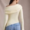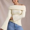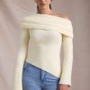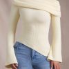Casual styling never looked so luxe. A playful twist on a classic favourite, the Cecily jumper is crafted from ultra-luxurious, soft and slightly stretchy ribbed-knit fabric to a figure-hugging asymmetric silhouette, framed with a foldover neckline that can be adjusted for your perfect fit. It’s complete with long flared sleeves that cement the laid-back look.