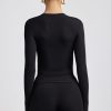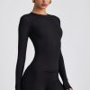 Low-impact essentials. A style you’ll reach for time and time again, the Clio top is designed for a comfortable second-skin fit. It’s crafted from naturally breathable stretch-ribbed fabric made with TENCEL™ Modal fibres derived from controlled or certified wood sources. It’s complete with a universally flattering high crew neckline and long fitted sleeves.